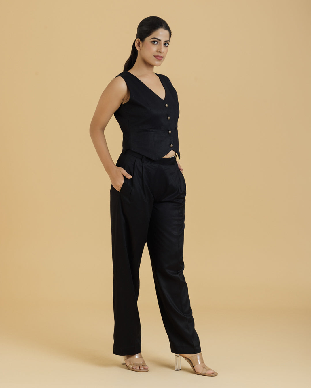 Crafted from 100% bamboo fabric, these black formal pants offer a perfect mix of sustainability and elegance. The relaxed yet tailored fit ensures comfort while maintaining a polished look. Lightweight and breathable, they are ideal for professional settings and formal events.