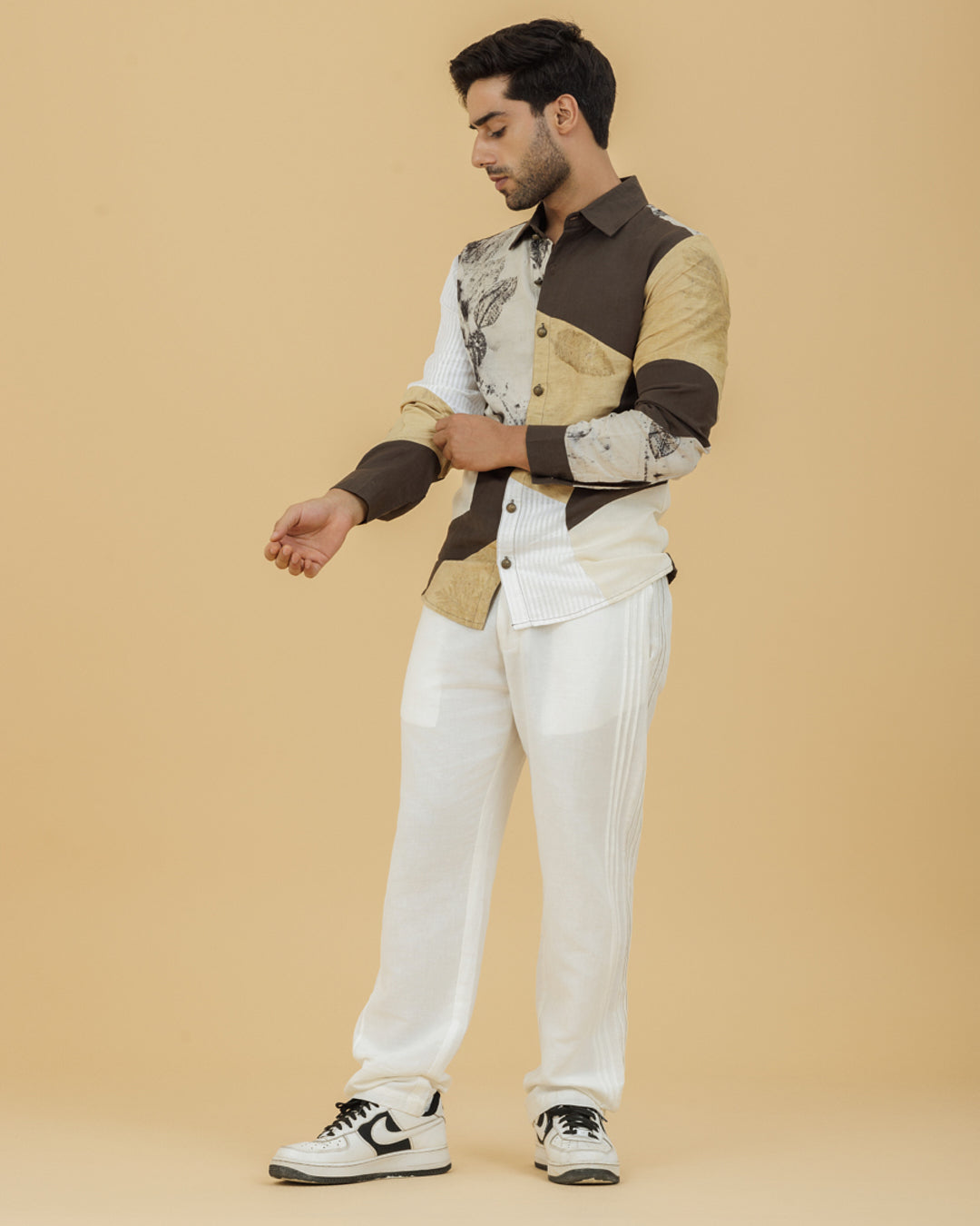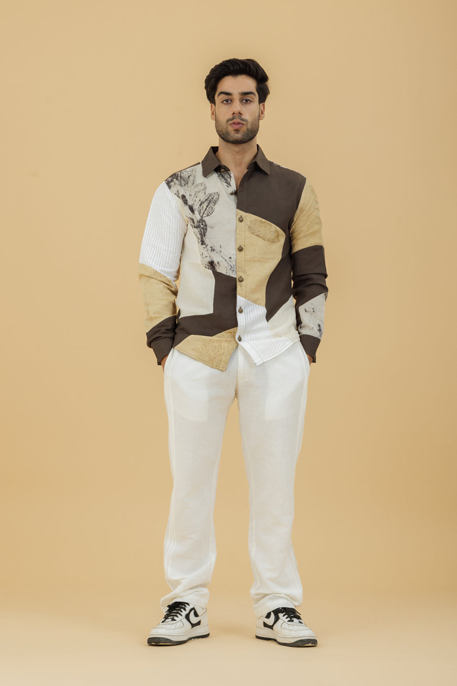 Discover the Botanical Print Patchwork Shirt, where nature meets sustainability. This full-sleeve shirt features a unique patchwork of botanical prints, crafted from recycled fabrics. With its varied shades and textures, it offers a distinctive, eco-friendly style.