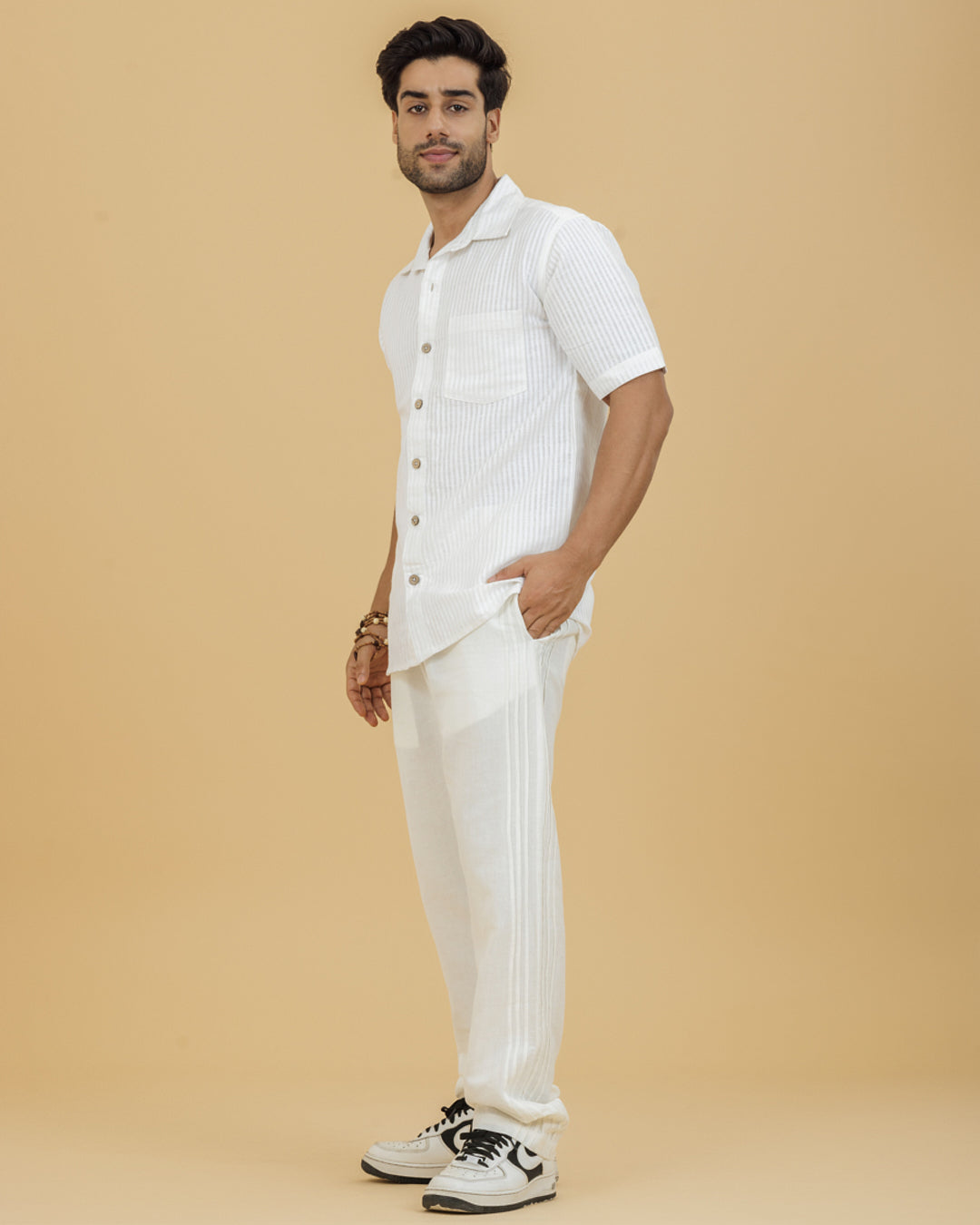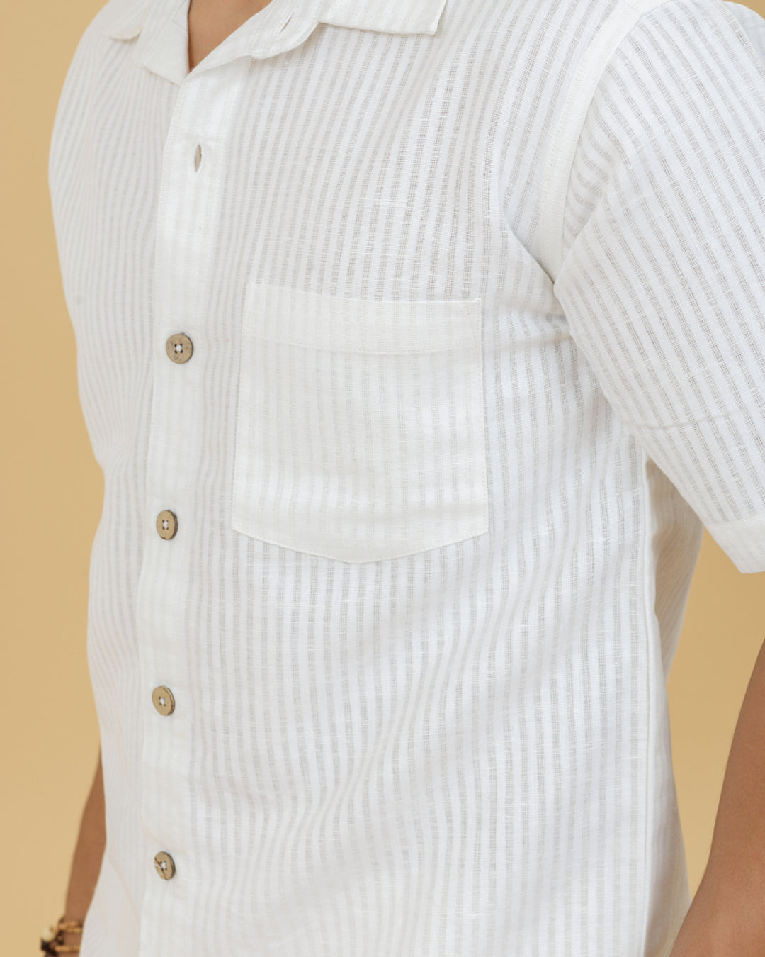 Upgrade your wardrobe with our eco-conscious Men's Shirt, meticulously crafted from a blend of hemp and cotton. This shirt features timeless white stripes, combining classic style with a sustainable edge. The hemp fabric ensures superior comfort and durability, making it a standout choice for those committed to ethical fashion. Embrace a look that's both refined and responsible.