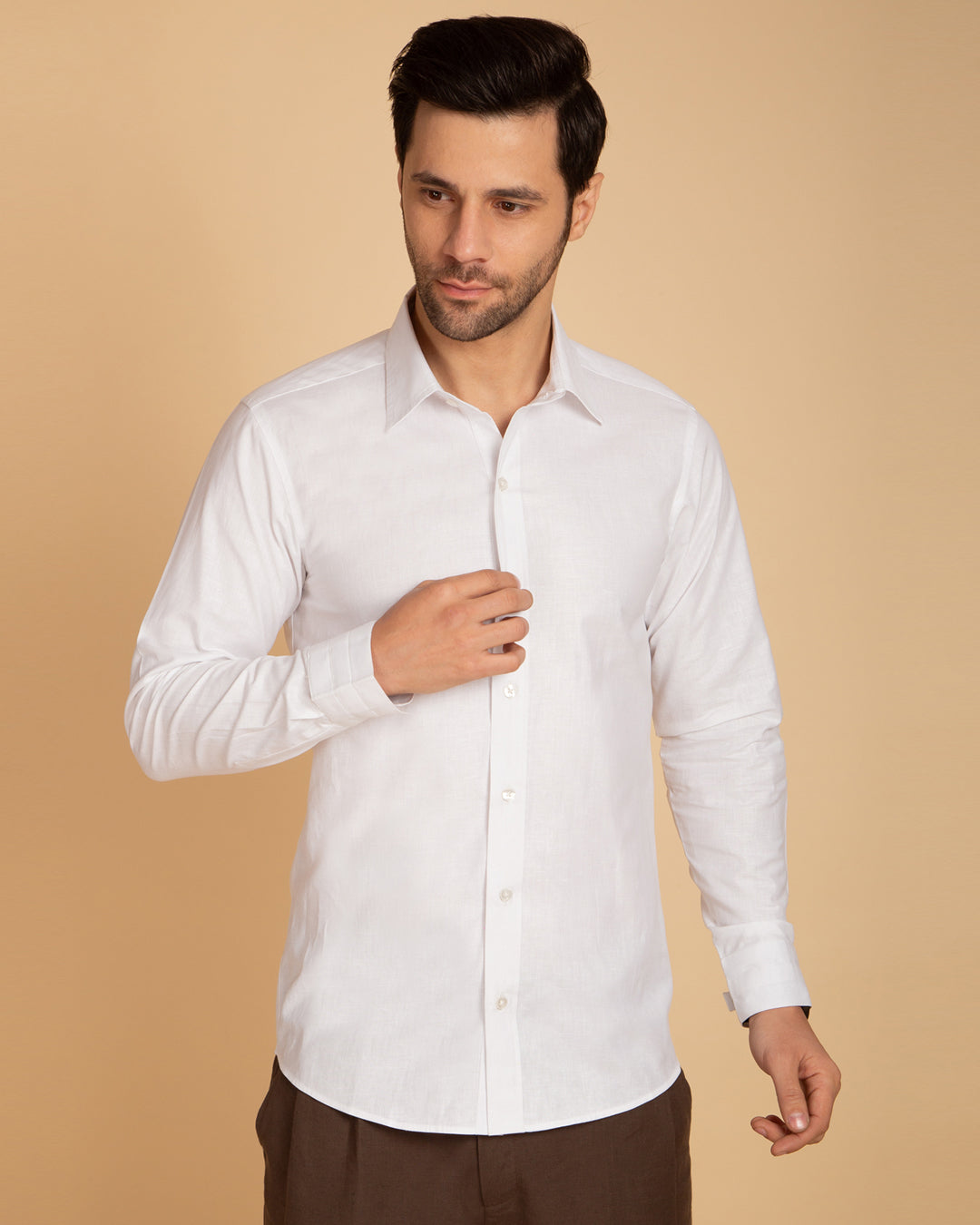 Our Men's Diamond White Smart Formal Shirt is crafted from 100% premium hemp fabric, offering breathability and sustainability. Featuring classic cuff detailing and a tailored fit, it's perfect for official meetings and evening events, combining elegance with eco-friendly sophistication.