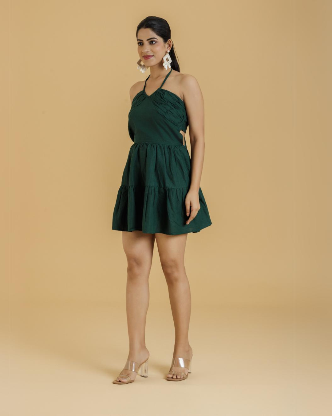 Embrace effortless elegance with the Emerald Breeze Back-Tie Dress. Crafted from lightweight, breathable fabric, this stunning green dress is designed for comfort and style. The halter neck and open-back design with a bow-tie detail add a playful, feminine touch. The tiered skirt gives it a flattering silhouette while providing movement and flow, perfect for warm-weather outings, brunch dates, or beach getaways.