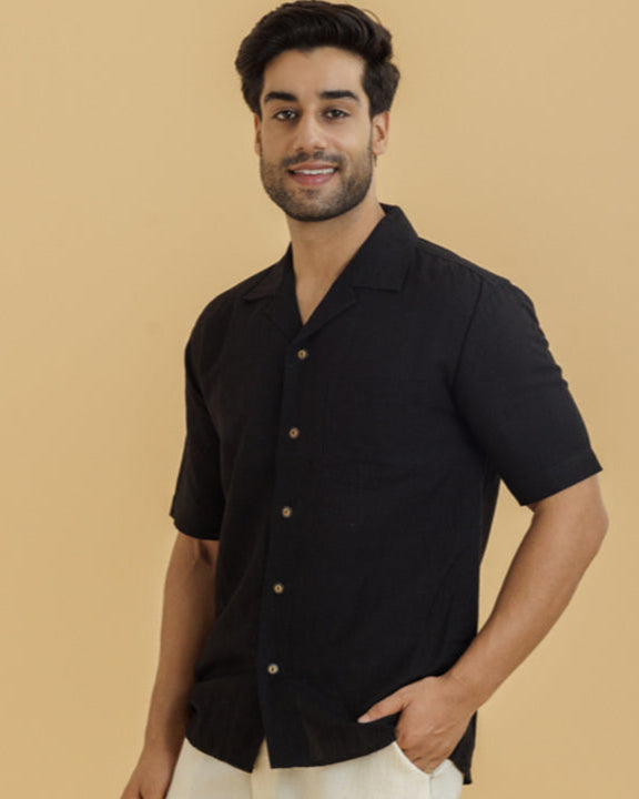 Cuban Collar Men's Shirt/ Black