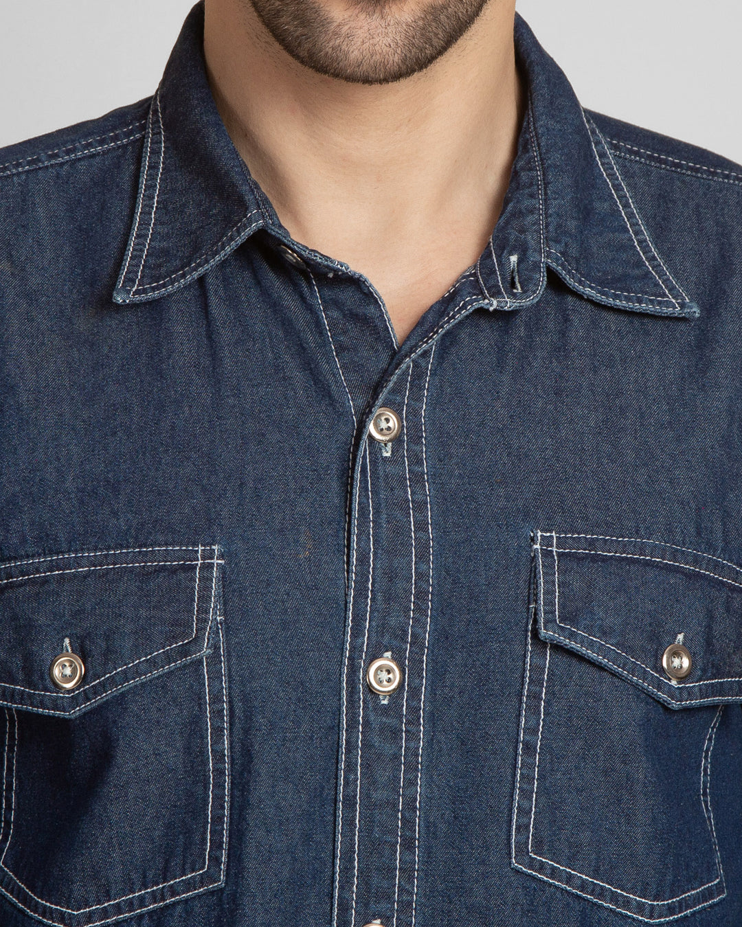 This Men's Regular Fit Denim Shirt is the perfect blend of classic and contemporary design. Featuring flap patch pockets on both sides of the front, this shirt offers both practicality and style. The converted collar adds a subtle modern touch to its timeless appeal, while the topstitch details enhance its structured, durable design. Whether worn casually or layered over a t-shirt for extra style, this shirt delivers comfort and versatility. A must-have piece for any denim lover, it's perfect for a smart-casual look or relaxed weekend wear.