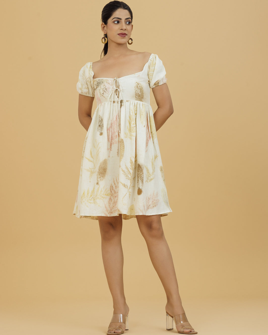 Introducing our Women's Puff Sleeves Short Dress, a chic and playful addition to your wardrobe. This dress features charming puff sleeves and a stylish tie-up detail at the front, adding a touch of modern flair to its classic design. Perfect for various occasions, it combines comfort with a fashionable edge.