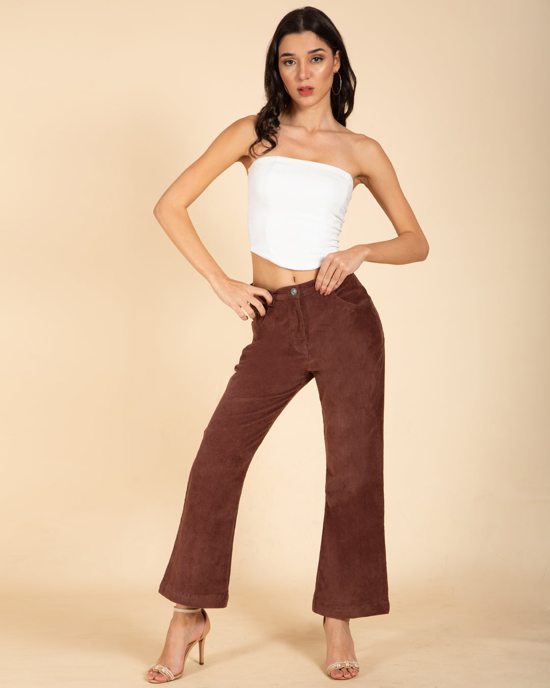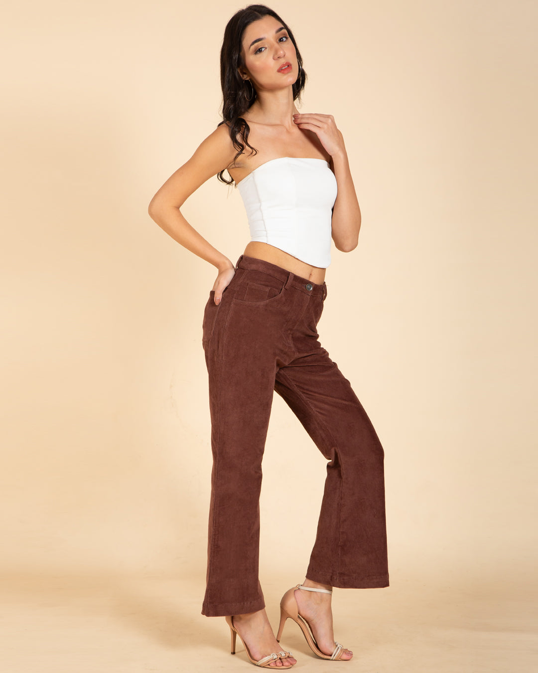 Upgrade your wardrobe with these Women's Corduroy Bootcut Jeans. Featuring a comfortable mid-rise waist, they offer a flattering fit that transitions seamlessly from day to night. Made from soft, breathable corduroy fabric, these jeans provide both warmth and stretch for all-day comfort. The classic bootcut silhouette elongates the legs, while the versatile design pairs perfectly with everything from casual tees to blouses. A timeless addition to any closet, these corduroy jeans are ideal for both relaxed and polished looks.