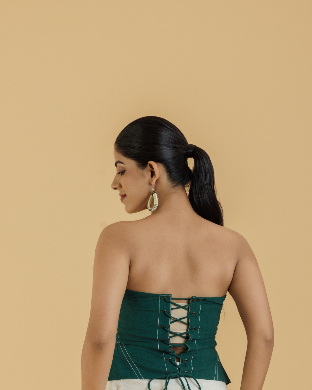 Introducing our Women's Body-Fitted Corset Top, a blend of elegance and versatility. This corset top features refined topstitch detailing and stylish side cutout panels that enhance its sophisticated design. At the back, an adjustable tie-up cord ensures a perfect fit for every body type, combining comfort with a tailored silhouette.