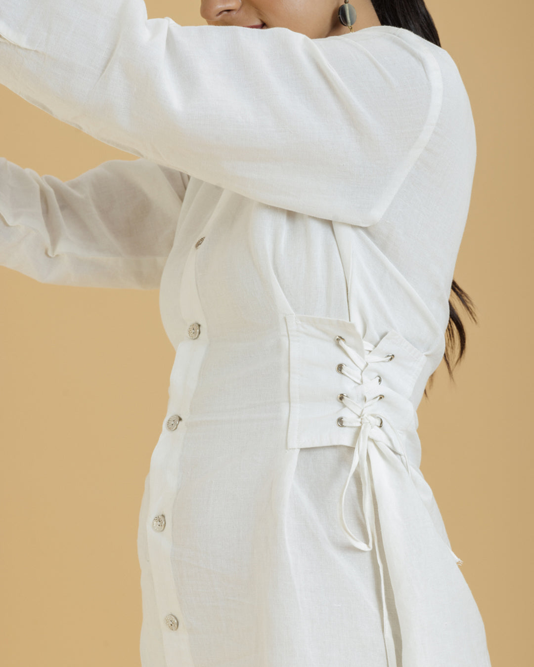 Introducing our Women's Short Loose Fit Shirt Dress, designed for effortless style and comfort. This dress features adjustable tie-up elements on the side seams, allowing you to customize the fit for a flattering silhouette. The loose fit ensures a relaxed and casual look, perfect for laid-back outings and everyday wear.